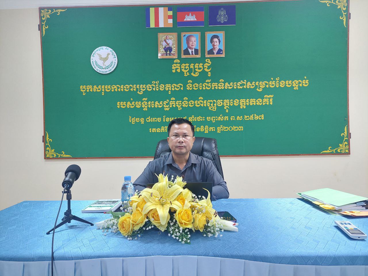 លោក ដួច ប៊ុនណា ប្រធានមន្ទីរសេដ្ឋកិច្ចនិងហិរញ្ញវត្ថុខេត្តរតនគិរី បានដឹកនាំអនុប្រធានមន្ទីរ និងប្រធានការិយាល័យនៃមន្ទីរសេដ្ឋកិច្ចនិងហិរញ្ញវត្ថុខេត្តចូលរួមក្នុងកិច្ចប្រជុំគណៈកម្មការកែទម្រង់ការគ្រប់គ្រងហិរញ្ញវត្ថុសាធារណៈ ដើម្បីពិនិត្យនិងពិភាក្សាលើរបាយការណ៍សមិទ្ធកម្មប្រចាំត្រីមាសទី៣ ឆ្នាំ២០២៣ ក្រោមអធិបតីភាពដ៏ខ្ពង់ខ្ពស់ ឯកឧត្តម អគ្គបណ្ឌិតសភាចារ្យ អូន ព័ន្ធមុនីរ័ត្ន ឧបនាយករដ្ឋមន្រ្តី រដ្ឋមន្រ្តីក្រសួងសេដ្ឋកិច្ចនិងហិរញ្ញវត្ថុ តាមប្រព័ន្ធអនឡាញ (Zoom meeting)។