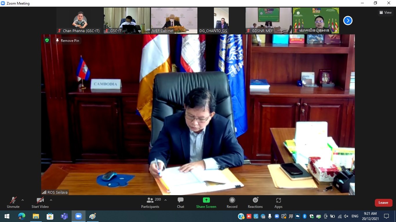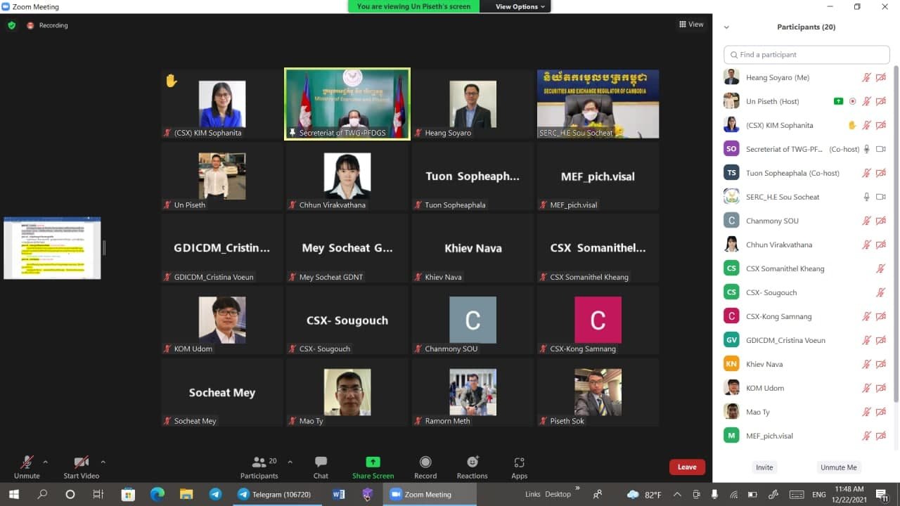 នាថ្ងៃសុក្រ ១៣កើត ខែមិគសិរ ឆ្នាំឆ្លូវ ត្រីស័ក ព.ស.២៥៦៥ ត្រូវនឹងថ្ងៃទី១៧ ខែធ្នូ ឆ្នាំ២០២១, វេលាម៉ោង ៩:៣០ នាទី ព្រឹក, ឯកឧត្តម រស់ សីសវ៉ា រដ្ឋលេខាធិការ នៃក្រសួងសេដ្ឋកិច្ចនិងហិរញ្ញវត្ថុ (កសហវ.) និងជាអគ្គលេខាធិការនៃអគ្គលេខាធិការដ្ឋានគណៈកម្មាធិការដឹកនាំការងារកែទម្រង់ការគ្រប់គ្រងហិរញ្ញវត្ថុសាធារណៈ (អ.គ.ហ.) បានដឹកនាំកិច្ចប្រជុំផ្ទៃក្នុង អ.គ.ហ. តាមប្រព័ន្ធវីដេអូអនឡាញ ដើម្បីពិនិត្យលទ្ធផលបឋមនៃការតាមដានវឌ្ឍនភាពការអនុវត្តយុទ្ធសាស្រ្តគន្លឹះទាំង ៥ ក្នុងកម្មវិធីកែទម្រង់ហិរញ្ញវត្ថុសាធារណៈ ។ កិច្ចប្រជុំនេះ មានការអញ្ជើញចូលរួមពី ឯកឧត្តមអគ្គលេខាធិការរង លោកប្រធានផ្នែក មន្រ្តីជំនាញជាន់ខ្ពស់ និងមន្រ្តីជំនាញ នៃ អ.គ.ហ. ហើយកិច្ចពិភាក្សាត្រូវបានផ្តោតលើការបែងចែកភារកិច្ចជូនឯកឧត្តមអគ្គលេខាធិការរង ដើម្បីដឹកនាំមន្រ្តីជំនាញតាមផ្នែក ក្នុងការរៀបចំខ្លឹមសារវិភាគ សម្រាប់ត្រៀមរាយការណ៍ជូនគណៈកម្មការកែទម្រង់ការគ្រប់គ្រងហិរញ្ញវត្ថុសាធារណៈ។